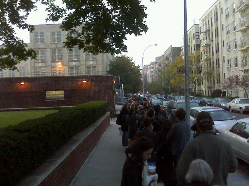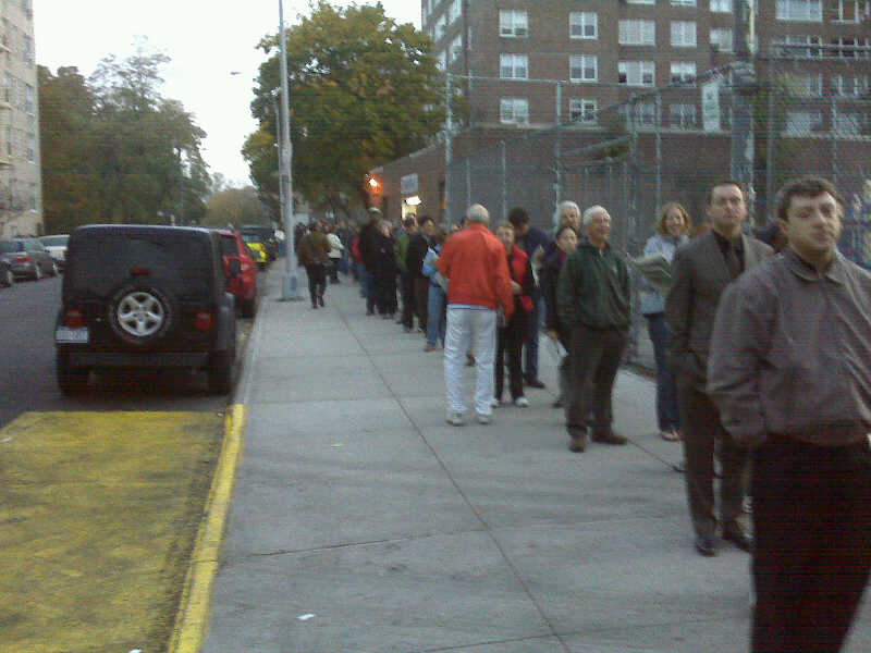 People predicted that there would be a huge turnout this morning. If my polling location is any indication, those people predicted correctly. The poll opened at 6 A.M. Statewide. I arrived at 6:30 thinking that I would miss the initial crowd, and beat the crowd that would try to vote right before going into work. There was a line down the block, around the corner and down the next block. For those of you who are familiar with my neighborhood, my polling station is PS 182 on Cabrini Blvd. The line wrapped around the corner at 190th all the way to Ft. Washington. It’s going to be a banger!