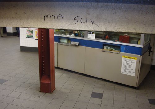 Speaking of graffiti writing, I loved this picture today from Animalnewyork. Which reminded me that there were MTA workers handing out survey cards at my stop this morning. The card said that you could also fill out the “Rider Report Card” online at www.mta.info. This is true, but only after diligently searching the site for over 10 minutes, was I able to locate the survey page. Here it is, for those who would also like to participate. I hope that on the next report card, there is a box to rate the MTAs fiscal accountability.