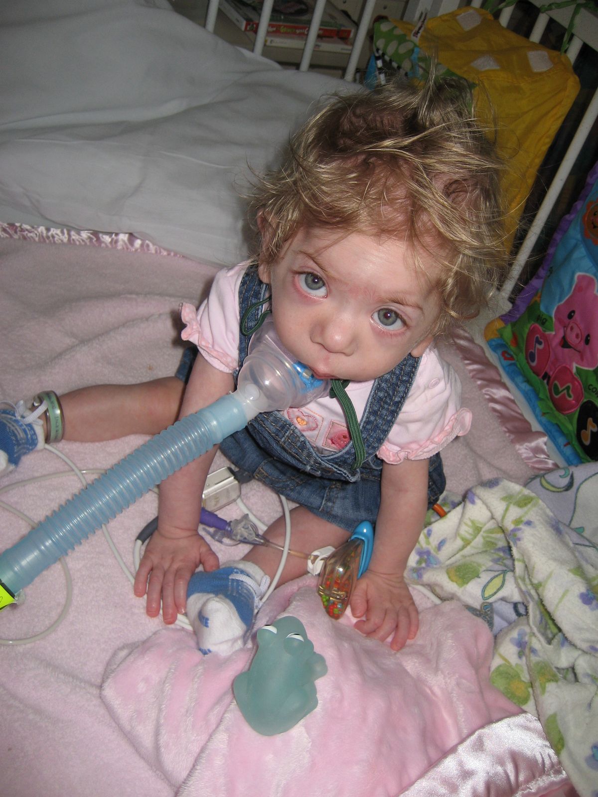 Piper has already had a great new year. Yesterday, the Hopsons came with us to visit Piper. Apparently Piper was in the mood to show off. Reagan positioned her in a sitting up position and she was able to hold herself up for almost a minute. Check Reagan’s blob for the video. She was in great spirits again today. She was sitting up, propping herself up with her arms (like in the picture). Our visit with Piper was cut shorter than we wanted it to be, when Piper’s feeding tube became disconnected and spilled all over Reagan’s jeans.