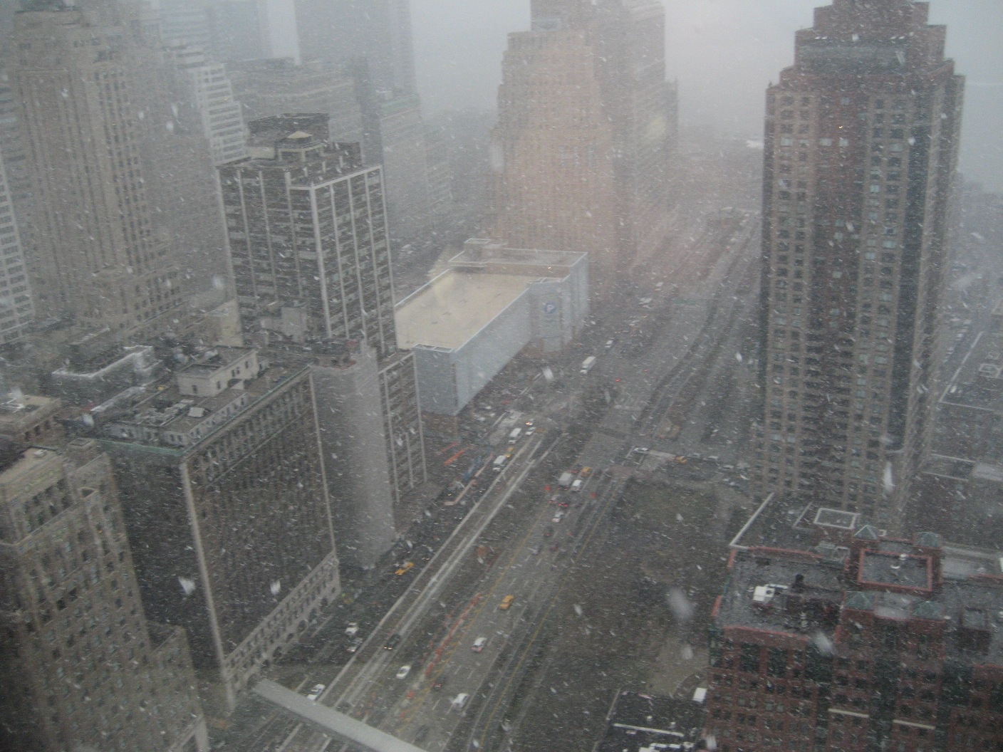 When I got on the train this morning, the sun was out, and it looked like it was going to be a beautiful day. When I came above ground, in the financial district, it was snowing sideways. Go figure.
