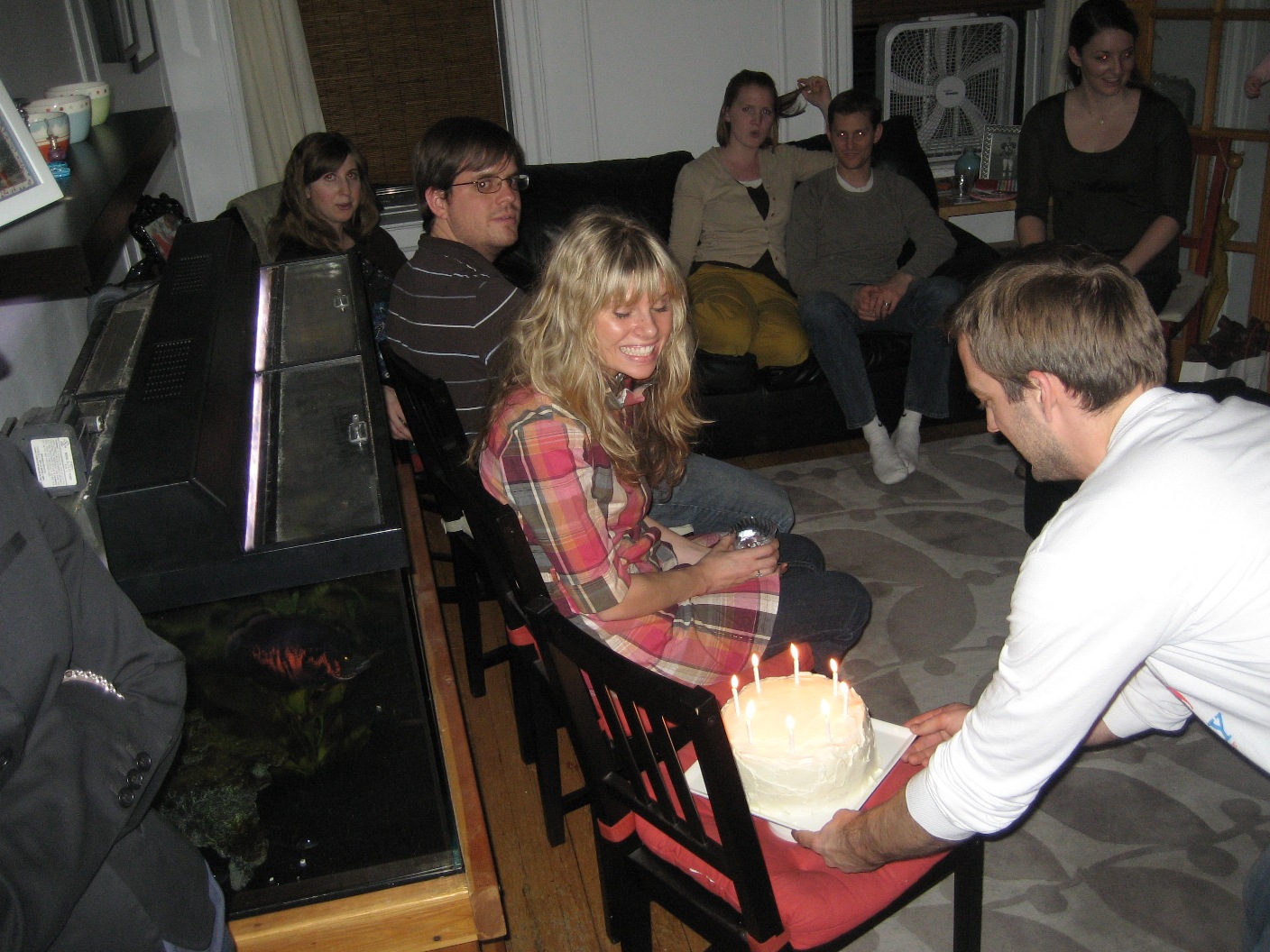 Reagan and I had a very enjoyable weekend. In addition to the Piper visits, we paid a visit to Brooklyn Industries, so that Reagan could exchange one of her Christmas presents (above). Then, Saturday night we had a little get-together for Reagan’s birthday. It was a lot of fun. I ran to grab the camera, so I could get a picture of Reagan blowing out the candles. Let’s just say that the pic didn’t come out so great. I’m not going to post it on here. But you can check it out here, if you would like to see some photography skills at their finest.