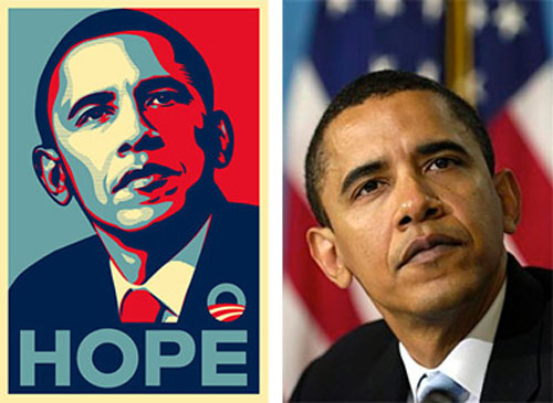 The iconic “Hope” image that was created and distributed by Fairey, during the Obama campaign, was tracked back to an Associated Press photo taken by Mannie Garcia, on assignment  by AP. The AP is now suing Fairey, claiming copyright infringement. Can you image the can of worms that is liable to open? Anyone who has done a stencil, can now owe royalties to the photographer who produced the picture it was taken from? Is the guy who took the Andre the Giant photo that Fairey modeled his “Obey” campaign on, now going to come out of the woodwork demanding cash?