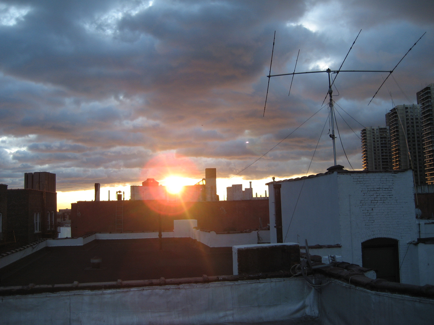 I got out of work pretty early last night and was able to crack the seal on my multiple month run-less streak. I did almost 7 miles. But to my dismay, my Nike Plus gadget was having all sorts of problems. I went on the website to try to troubleshoot it. I guess that other people had been having a similar issue, the first time that they tried to upload runs, after the new year. So I messed with it, and was able to get it to upload, but then it wasn’t showing up on my profile. So frustrating. Then I went for a quick workout this morning, after moving the car. When I synced it this morning, it worked. So I guess I just lost a run. I shouldn’t have really counted it anyway. It can be sort of like my practice/get back in the saddle, run. When I got back home, the clouds were breaking a little bit. So I went up on the roof and took this picture. I’m not really sure what my deal is, with taking so many sunset and sunrise photos lately. I guess I have just seen a lot of good ones, recently. I’m seriously trying to milk this warmer weather for all it’s worth. Hahahah