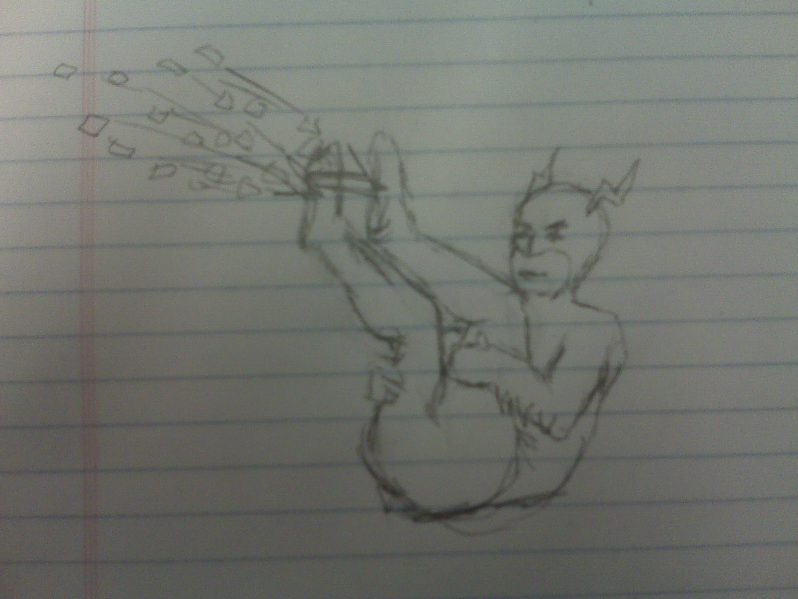 The other night, Reagan and I were having a tough time falling asleep. When this happens, Reagan generally starts saying stuff to make me laugh. Reagan is a pretty funny girl, and when you couple that with already being a little punch drunk with the “tired sillys,” it can get pretty entertaining. The particular night I’m referring to, we were talking about super hero powers. Reagan commenced to tell me about how earlier that day, when she was flying around, looking through walls, shooting lasers out of her fingers, and shooting ice out of her feet… blah blah. I was like “yeah, yeah, good one. Wait. Shooting ice out of your feet!?!” I then commenced to laugh until I was feeling kind of sick. I told her that we were both going to have to draw pictures of what a super hero looks like, shooting ice out of his/her feet. This is what I came up with. Your turn, Reag.