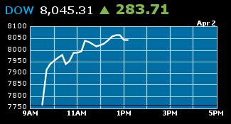 I mean, I complain so much when the index is tanking, I felt like it was high time that I dropped in some positivity, as well. Is it because of Obama’s statements regarding the US automakers? Is it because the G-20 has agreed on terms of regulation? I’m not really sure. But for me, getting back over the 8000 mark is the icing on top of this beautiful sunny spring day. See that? I used a metaphor. The BSSD is the cake, the DJIA is the icing. I learned it on Reading Rainbow.