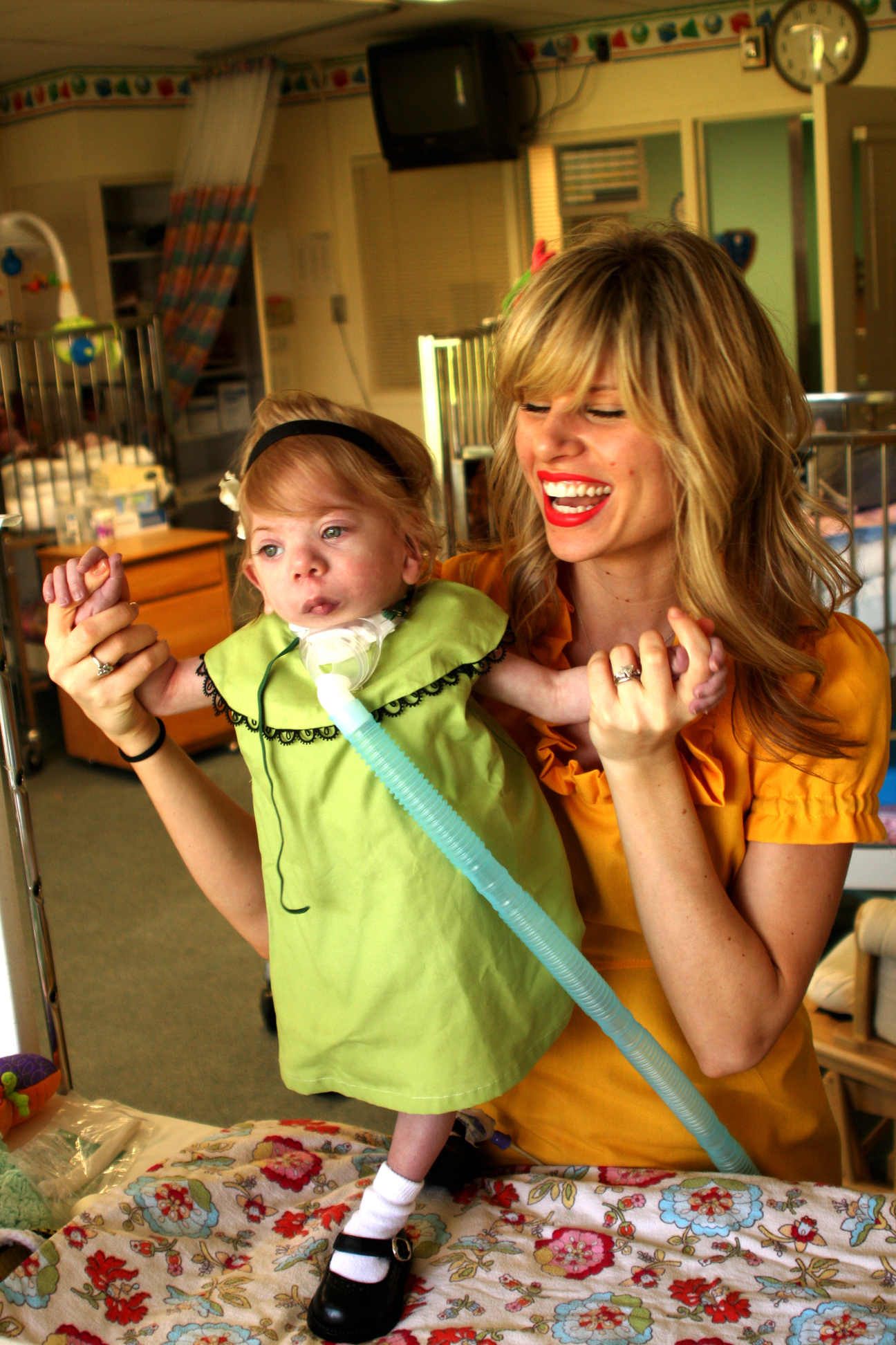 We had an awesome Easter, so far. Although brisk, the weather is very sunny today. Church was great. The music was inspiring. We were so excited to see Piper, that we skipped the last portion of our church meetings, and booked it up to Westchester. Reagan brought Easter cookies that she had made, for all of the nurses. It was kind of sad knowing that it was going to be our last weekend at Blythedale. But we had a great visit with Piper. For some reason, it was a little bit chilly in her room today. So it took her a long time to warm up after we gave her bath. That’s why she is a little bit blue in the photo below. My two girls looked incredibly cute together in their Easter dresses. Piper was super mellow and a lot of fun, the whole time we were there. The rest of the photos can be seen here.