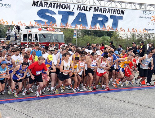 Holy smokes! I saw that guy in the red shirt on the starting line last week on Nova – PBS!!!(No lie! – What was his name?!) They did a documentary about slug-people training for and running the Boston Marathon. He was one of the subjects. Wow. I guess he liked it. Rad.