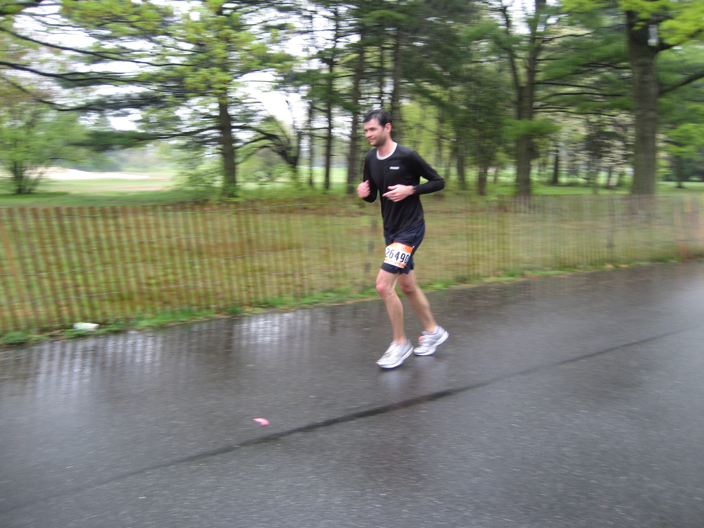 @angie: Is it this guy? I’m not familiar with “slug-people.” Is that some sort of term of art? Hahahah. It looks like he was running the half marathon, from his blue bib. If it is that guy, I’m not really sure why he was starting from the front row, if he runs an 8:53 mile.
