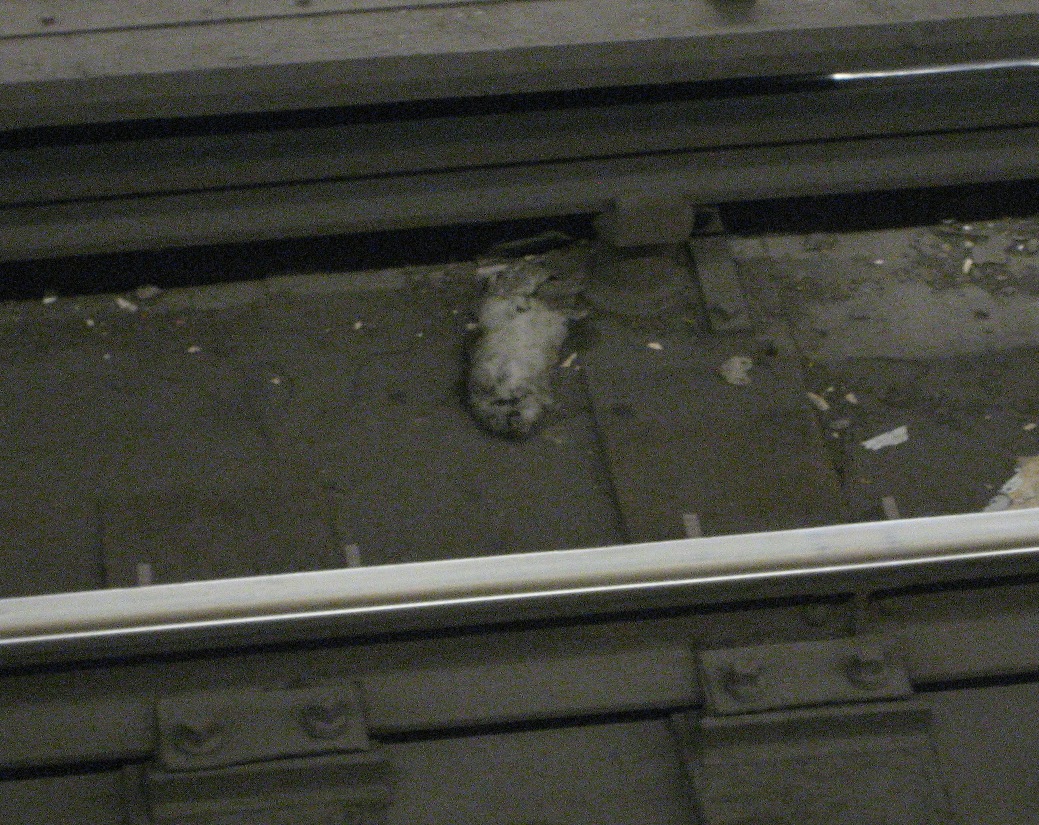 It is a size XXL Rat.It looks like he may have been too fat to fit under the 3rd rail and got zapped. Hahahah