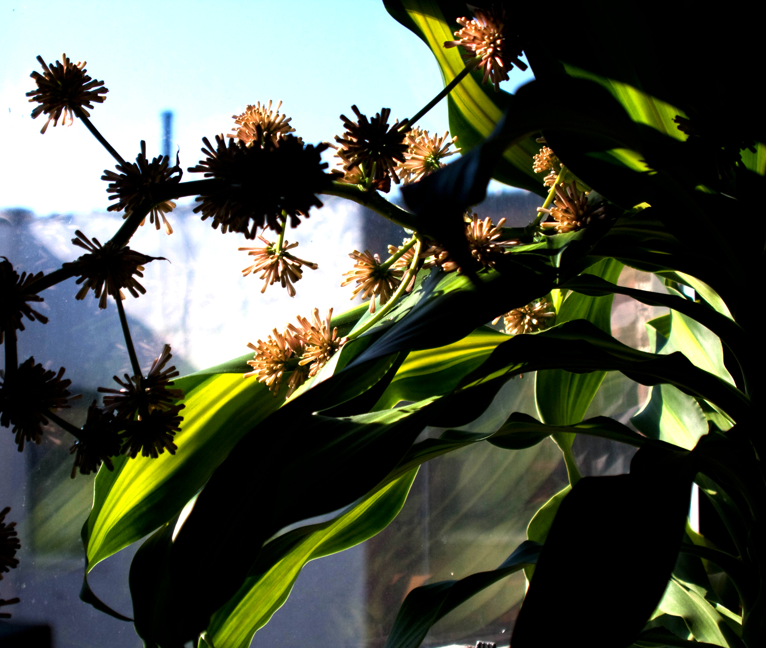 I have read in a few places that this spring has been an especially bad one for allergy sufferers, because of the abnormally high amount of pollen in the air. Little did I know, some of our own household is contributing to the problem. This plant of ours, that lives in our home office has been there since we rescued it from a dumpster a little over a year ago. Since then it has grown about 3 feet in height, and now, is apparently germinating. The freakish part is that this bloom in the photo above seriously popped up virtually over night. Here is a photo of this very same plant that I posted to my photo blog on May 4th. The 2 foot long branch containing all of the blossoms is no where to be seen. I probably wouldn’t have even noticed it, if I hadn’t walked in the house last night to the aroma of honeysuckle permeating the entire apartment. I have to say that the trade-off of having a little extra pollen in the air is well worth being greeted by the smell of fresh flowers when I walk in at night.
