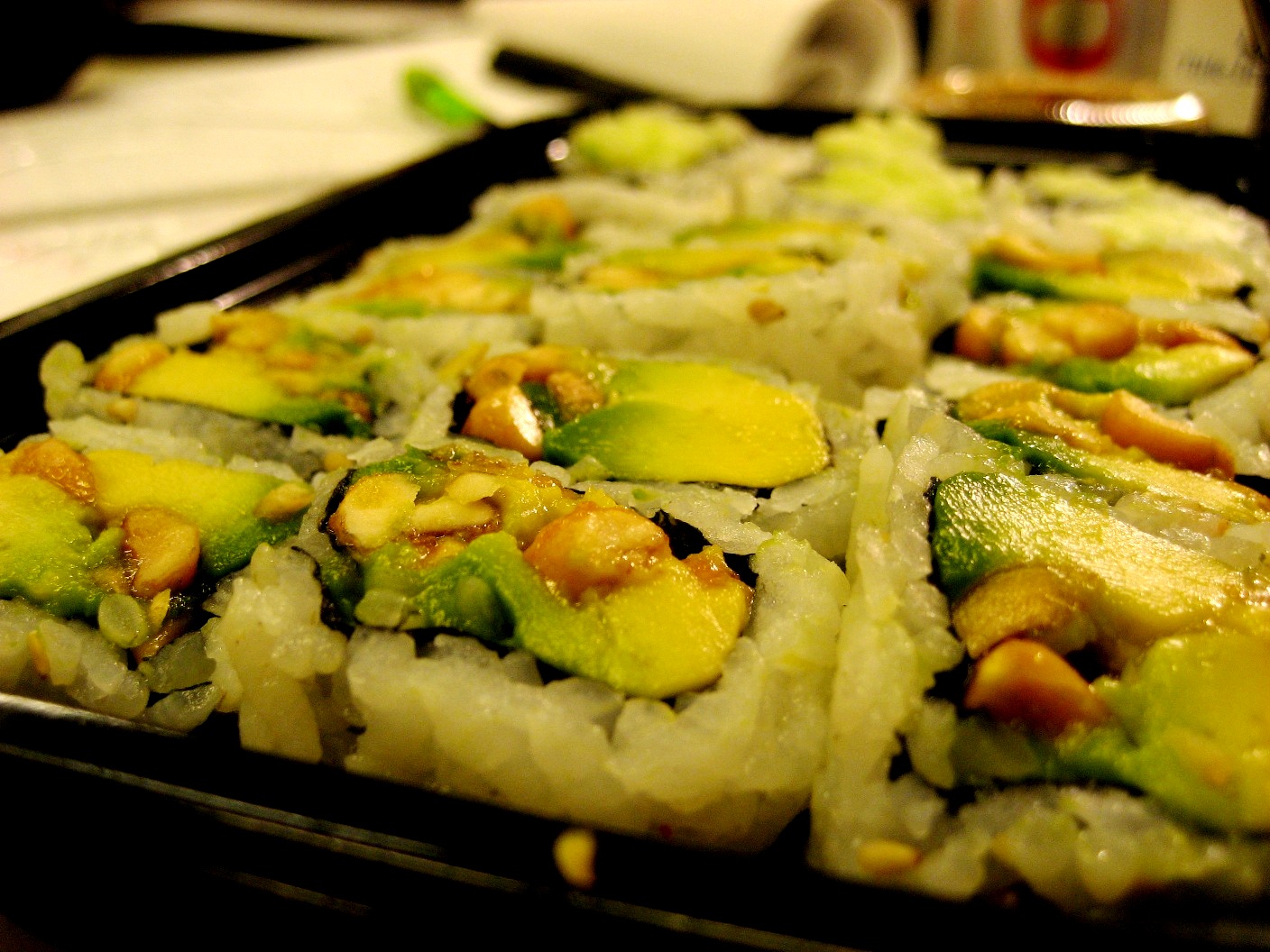 This month, I came across a kind of cool article in Details. It was published in the “Know and Tell” section, and titled “Prescription-free Antidepressants.” According to the piece, consuming nuts (one of my favorite foods) and fish supposedly help fight stress, etc.. So what better way to fight depression that doubling up a peanut-avocado roll for dinner? Hahahahah. This place on Maiden Lane, Sushi Ala Kawa, is the only sushi joint I have ordered from that makes these rolls. It has become, probably, one of my top 10 favorite foods (but still pretty far behind NY pizza and pub burgers). The fact that it also keeps me antidepressed is just a bonus.