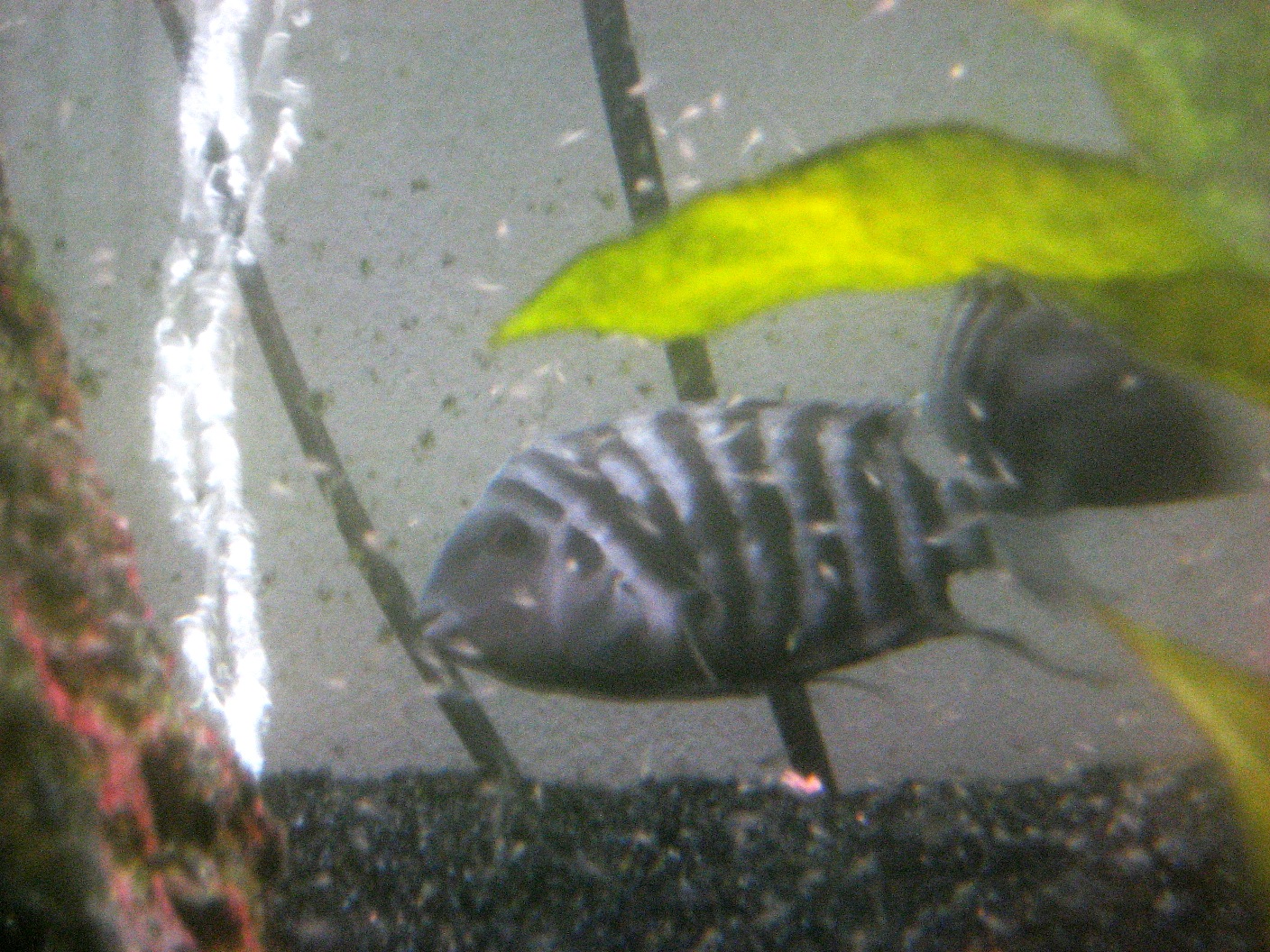 Ok, yes, this picture is exactly what it looks like: A ton of blurry little baby fish swimming around one of their proud new parents. It is getting a little out of control. I mean, I know it is spring and everything, but for these guys to spawn twice in 2 months seems to be a little excessive. Does anyone want some convict babies? We have about 300 more than we can take care of, at the moment.