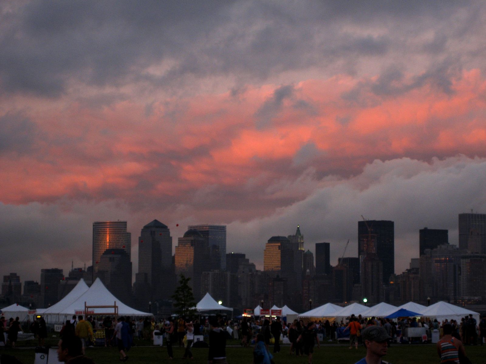 Reagan, and I have been pretty pumped about this show for a couple of months now. It was especially cool, because we generally try to get to a lot of shows during the summer, when it is nice outside. For whatever reason (the exceptional amount of rain is actually probably the reason), we haven’t really been to many, this year. In fact, we have been to one, if you don’t count seeing the philharmonic in Central Park. We were, of course bummed when we heard the news about MCA. But we would be crazy to complain about who they found to replace the B-boys. We showed up around 3 and just kind of wandered around to check the place out. It was kind of sprinkling on and off. We ran into on of our friends right before it started to pour. We found a little tent booth that had been abandoned and spend the next 3 hours under it. Hahahaah