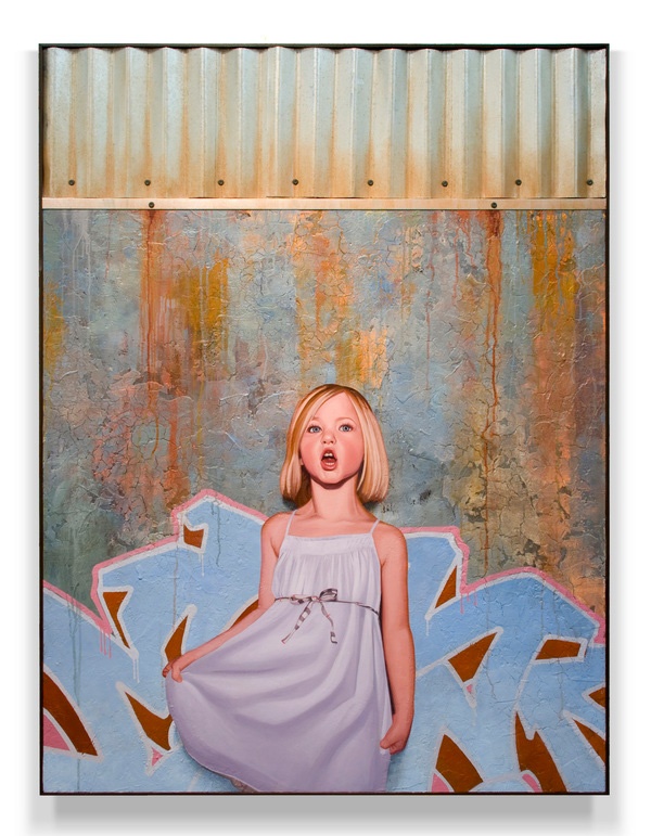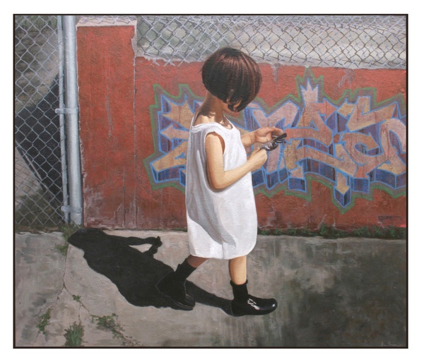 In a slight twist from the street art stuff that I usually post, these are actually photo-realist oil paintings by artist Kevin Peterson. They are from Peterson’s series “Graffiti Girls.” Peterson is based in Houston TX. You can check out a couple more pieces from the Graffiti Girls series on Format.