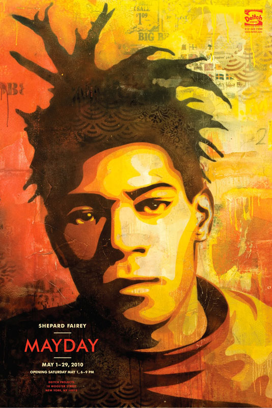 Deitch Projects is pleased to present May Day, an exhibition of new work by Shepard Fairey, as its final project. Titled not only in reference to the day of the exhibition’s opening, the multiple meanings of May Day resonate throughout the artist’s new body of work. Originally a celebration of spring and the rebirth it represents, May Day is also observed in many countries as International Worker’s Day or Labor Day, a day of political demonstrations and celebrations coordinated by unions and socialist groups. “Mayday” is also the distress signal used by pilots, police and firefighters in times of emergency.