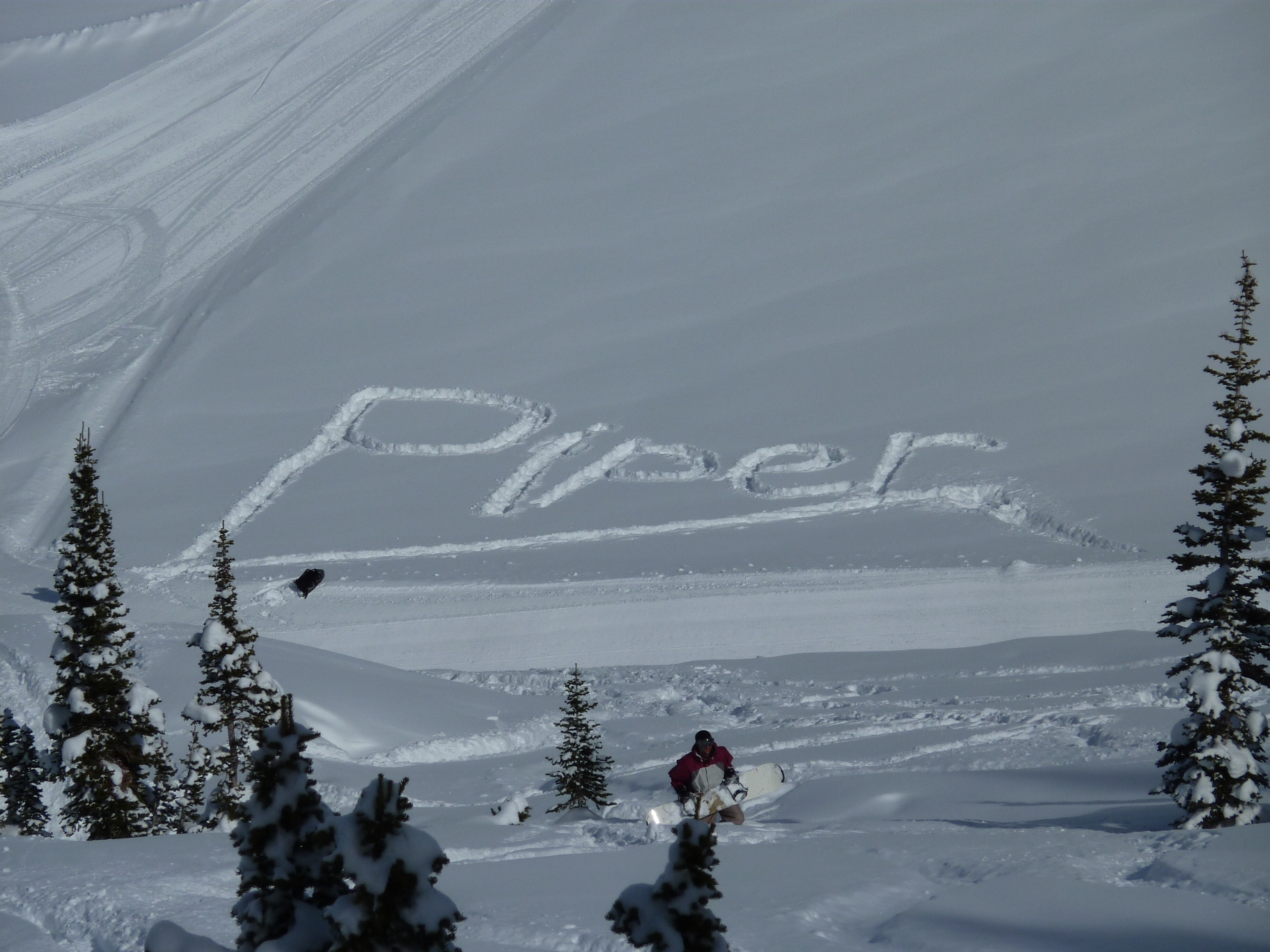 This is one that I figured I had better post now, before I totally forget. When we were visiting UT, a little over a month ago, Reagan made Piper’s name in the snow, next to the cat track in Grizzly Gulch. I was hiking back up to get a photo of it (that is me, hiking in the foreground), when my brother-in-law, who was still up on the ridge, informed me that they had it covered. The shot was actually taken by my bro-in-law’s brother. They forwarded the image a couple of weeks ago, but I kept forgetting about it, until today. It is a little bit reminiscent of the sand sculpture that Reagan made in Buzios.