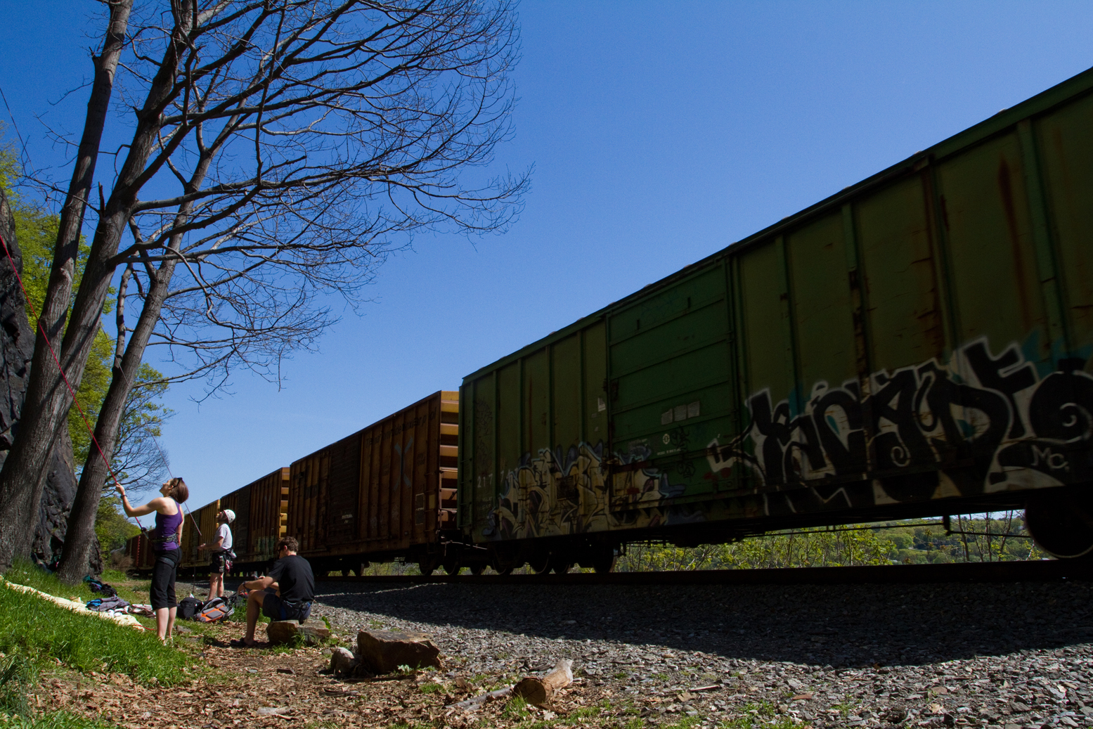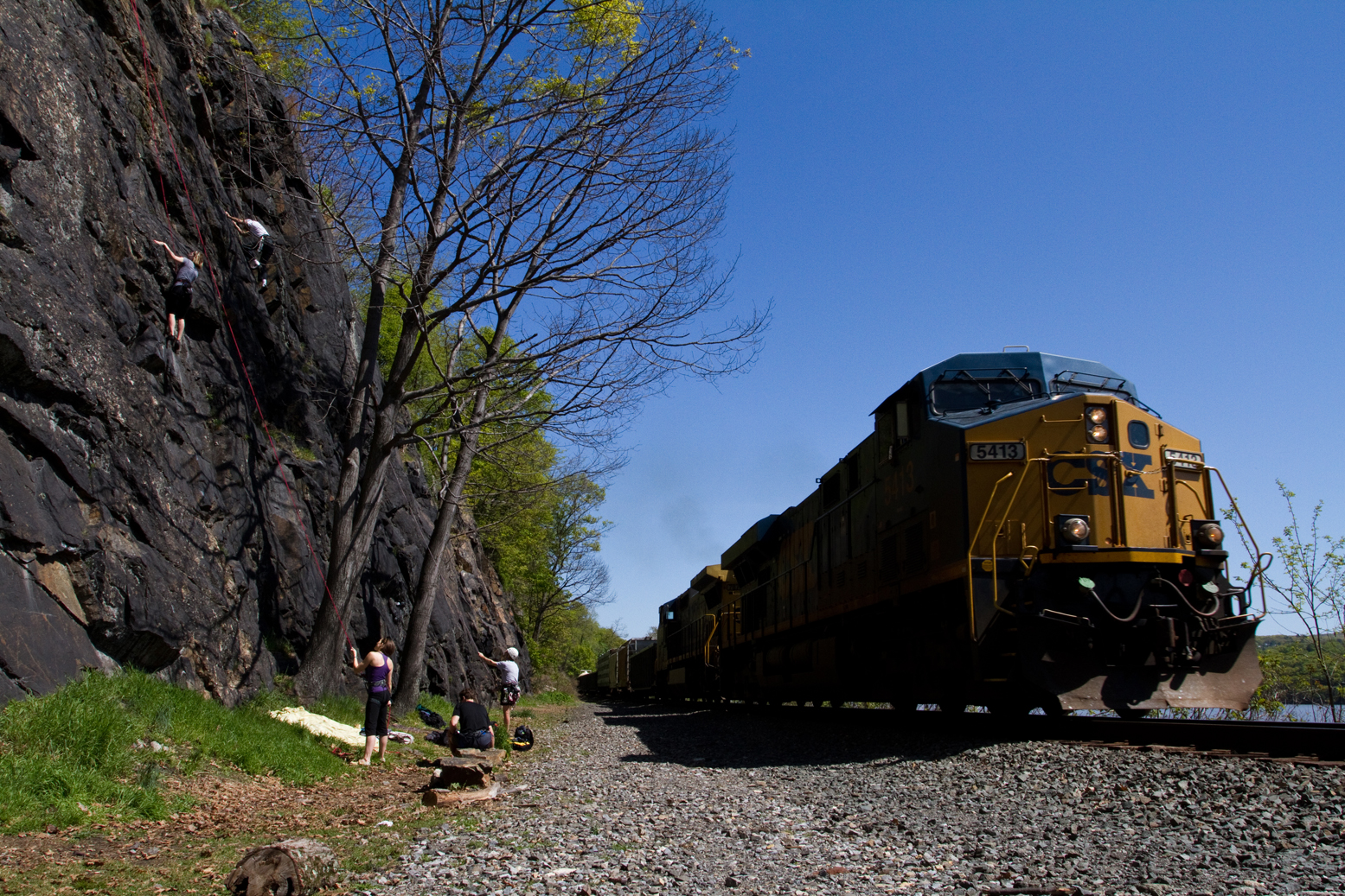 NY, the only place where it looks natural to see rock climbers next to a moving train.