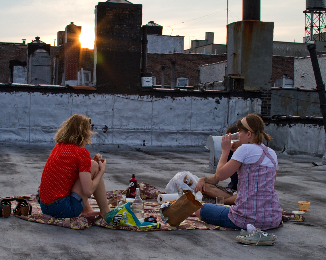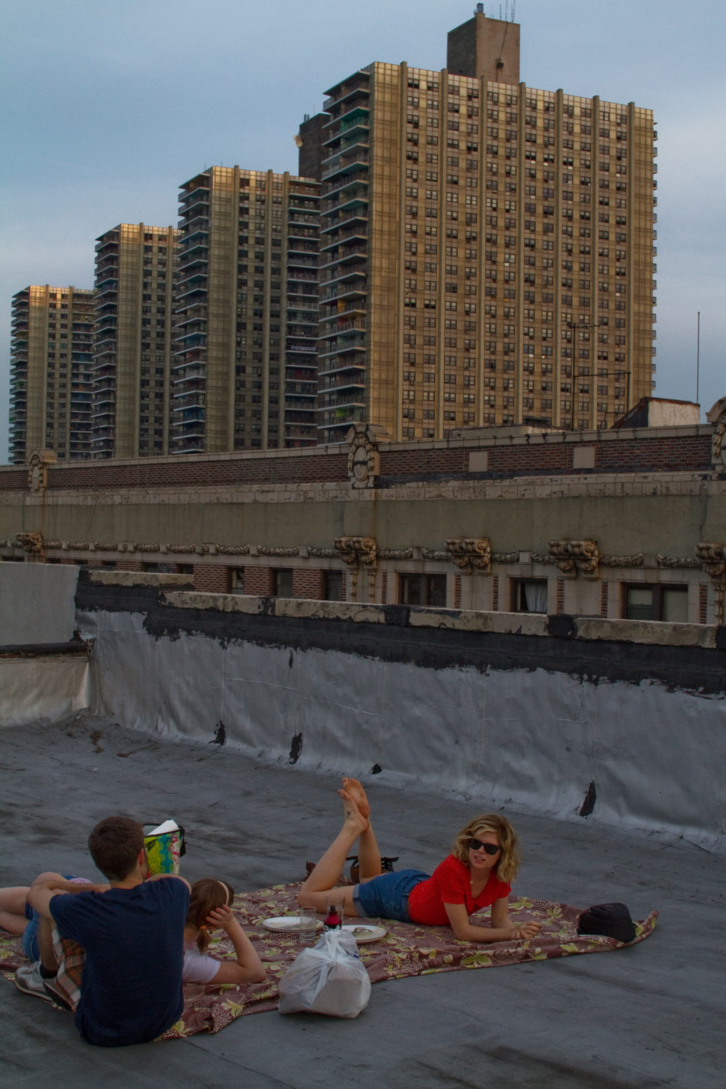 For dinner, we ordered in. But since it is so bloody hot in our apartment (even with the A/C running full tilt) that we retired to the rooftop for a picnic of sorts. It was breezy and much cooler up there. Of course I couldn’t be on the roof without getting a shot of my favorite buildings, hahahah.