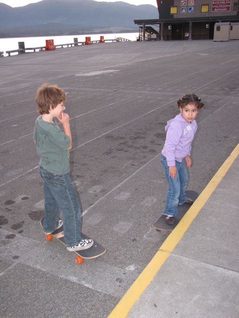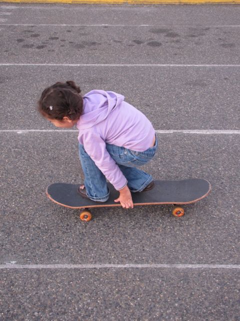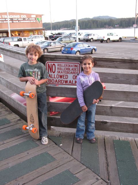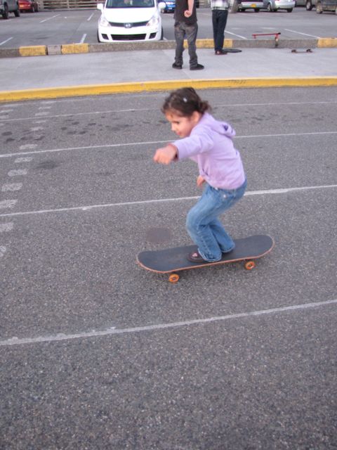 Okay so the No Skateboarding photo looks more rebellious than it is. We did not actually let them skate on the boardwalk, only on the pavement, where it is okay. I think running from the police comes a little later in her skating career. When her legs are a bit longer maybe.