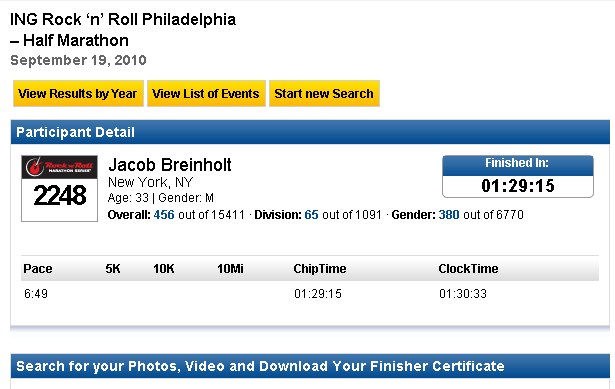 Dudes, I’m not really even sure where to start. It was a crazy weekend, for sure. I guess that sort of backwards is the best way to go, since I posted the screen shot of my results, first. For once, I finally attained my pre-race goal. I was shooting for 1:30 in this race and hit it, with 45 seconds to spare. I was so stoked about it. Using the standard formula of doubling that and adding 10 minutes, for a full marathon time, I’m almost on pace for marathon season, next month. I guess that is all I’m going to write about the actual race, because I don’t want people to get bored. But, I will add– run this race (command). I have run it multiple times, now, and can say that it is my favorite race (no offense NYRR), period.