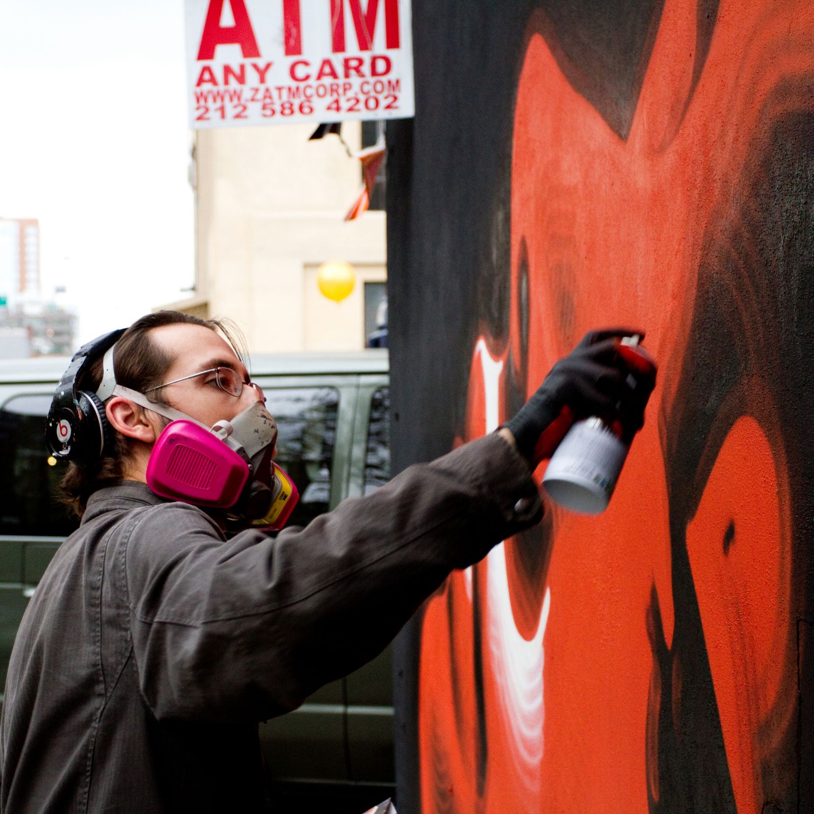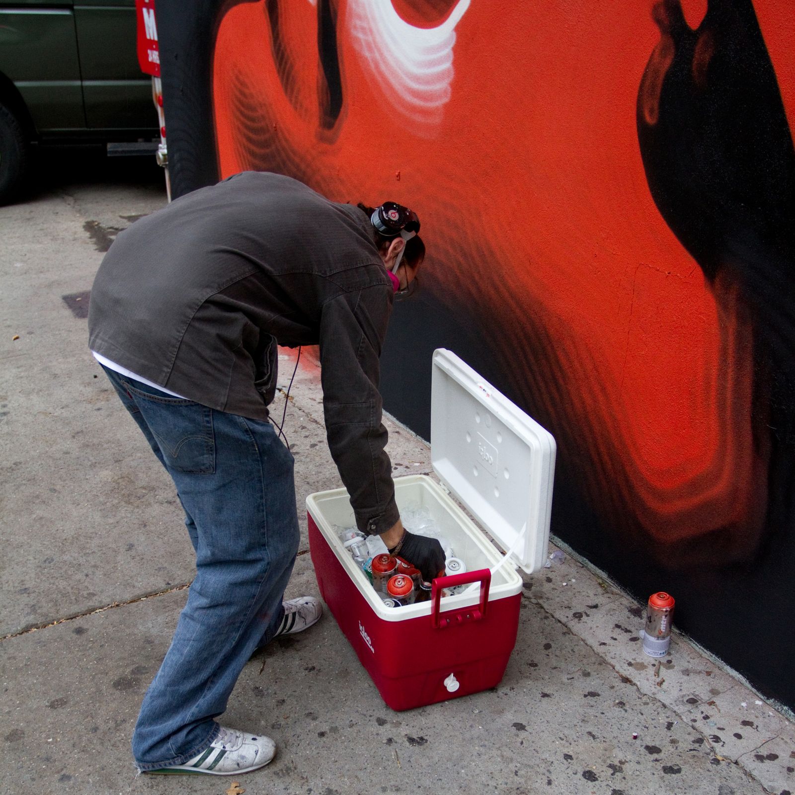 I had myself a pretty busy little evening, last night. But it ended up being well worth hiking all over the island in the rain. First stop was Chelsea, to shoot El Mac working on his mural for his solo exhibit “The Humble and Sublime,” which opened at the Joshua Liner Gallery last night. I have been a fan of Mac’s work since I discovered it. Now that I have seen it in person, and had a chance to chat with him, I like it even more. More on the show, over here.