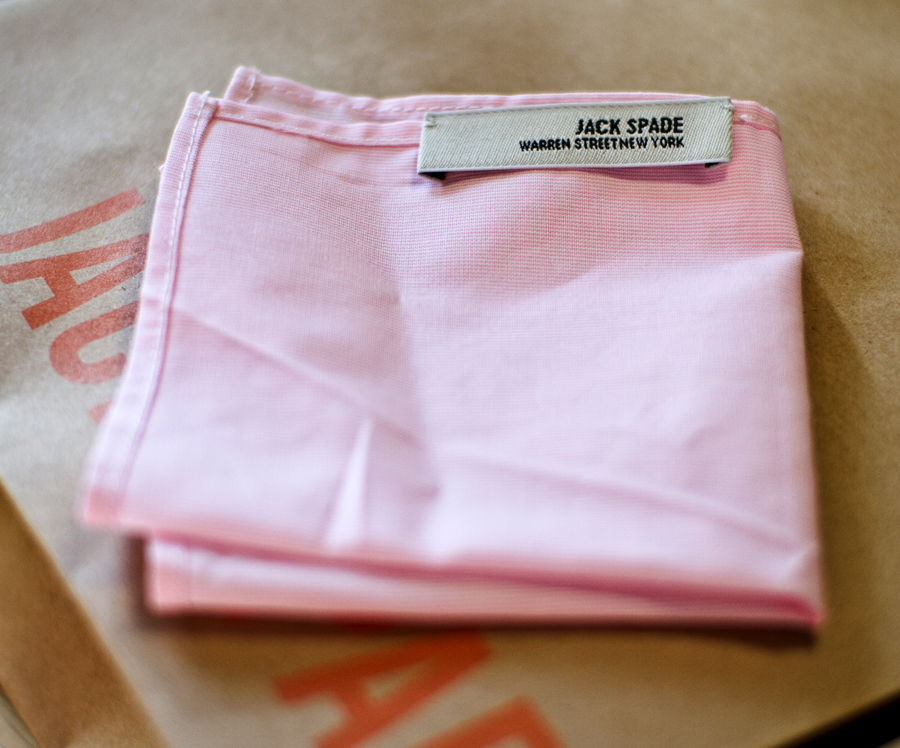 Instead of green, today’s item is actually pink. It is a pocket square by Jack Spade. It’s a part of their yet to be released Fall line. I feel like sometimes I can be kind of a fancy guy. But, I have never really worn a pocket square. In fact, I rarely even break out a full suit these days. But, for those who do take their GQ game to the next level, this giveaway is for you. Here is a link to the various fancy ways to rock a pocket square.